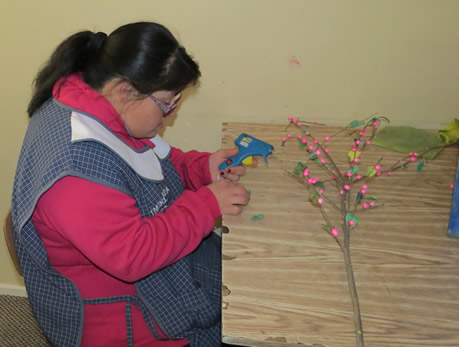 Todos los jueves hay una actividad manual cuyo fin es desarrollar habilidades motores finas, atención y concentración. Proceso de fabricación de bolsas de basuras